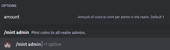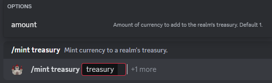 Mint currency to another realms treasury. You cannot mint to your own treasury. Treasuries are an advanced concept that you can read about more here: Treasury